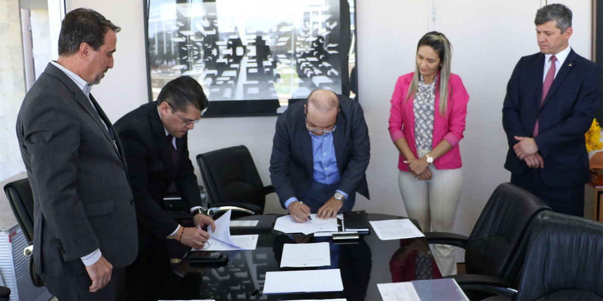 O governador Ibaneis Rocha assinou, na manhã desta quarta-feira (7), a ordem de serviço que autoriza a licitação para construção do terminal rodoviário de Santa Maria e a instalação de papa-entulho na quadra 219 da cidade. A deputada distrital Jaqueline Silva participou da cerimônia como representante da cidade e destinou R$ 1 milhão e R$ 270 mil em emenda ao orçamento de 2019 para o início das obras do terminal e instalação de papa-entulho na AC 219, respectivamente. “Logo quando assumiu o mandato, a deputada Jaqueline Silva apresentou o terminal rodoviário como uma das principais demandas da comunidade de Santa Maria. Agora, com o apoio de todos os órgãos, vamos fazer essa entrega para a população.”, ponderou Ibaneis Rocha, “A instalação de papa-entulhos também é muito importante, já que ajuda a combater à dengue no Distrito Federal.”, completou o governador. Hoje, também foi assinada pela Terracap a cessão dos terrenos – de 1 mil m² para a instalação do papa-entulho e 16 mil m² para o terminal rodoviário – que atualmente, é um espaço sem infraestrutura, que serve como ponto para 11 linhas de ônibus. A deputada trabalhou juntamente com a Terracap, Secretaria de Mobilidade do DF e Serviço de Limpeza Urbana (SLU) para garantir inédita cessão dos terrenos. Agora, ambos os projetos podem seguir para licitação. “Santa Maria possui cerca de 160 mil habitantes e é inadmissível que a cidade continue sem um terminal rodoviário. O projeto representa dignidade e melhoria na qualidade de vida da comunidade após anos de demandas e milhões perdidos em emendas. Agradeço aos esforços e comprometimento do governador Ibaneis Rocha.”, afirma a distrital.