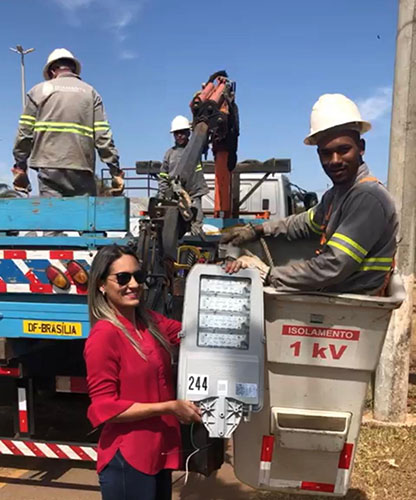 As 546 lâmpadas dos postes de toda a avenida estão sendo trocadas por LED, que ilumina 6 vezes mais, com 44% economia de energia, aumentando, assim, a visibilidade e segurança da comunidade. A troca foi possível graças ao recurso em emenda parlamentar que a deputada distrital Jaqueline Silva destinou ao orçamento de 2019.