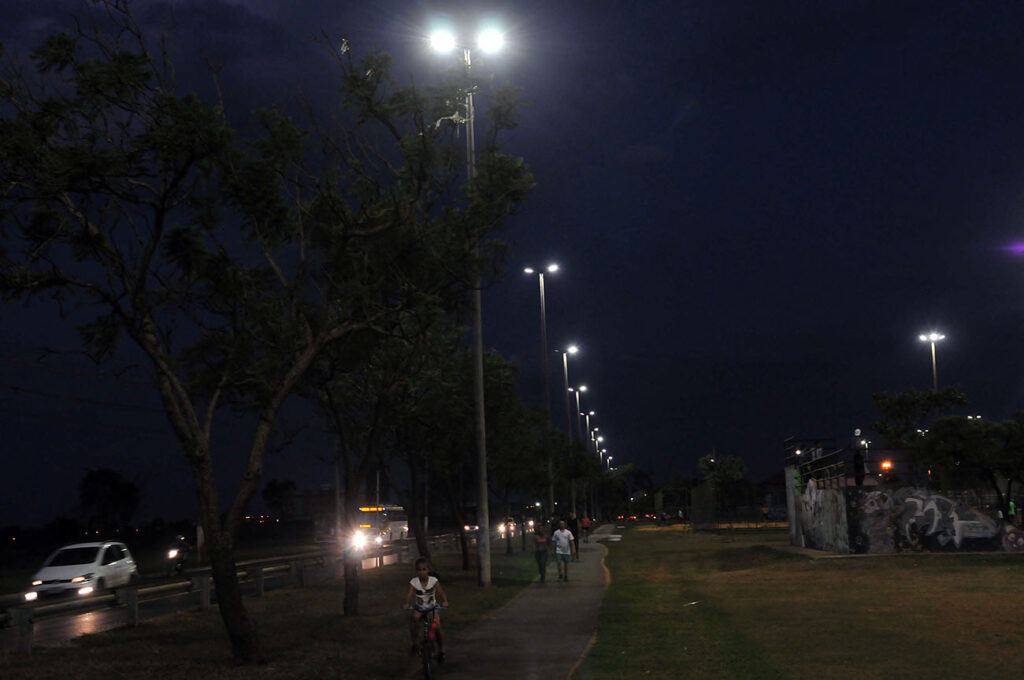 Aos poucos, estamos substituindo as luminárias convencionais em postes da cidade por lâmpadas de LED, que iluminam melhor e são mais econômicas. Essa substituição já aconteceu em toda avenida Alagados e também nas comerciais 202/302, 216/316 e no campo sintético da 418.