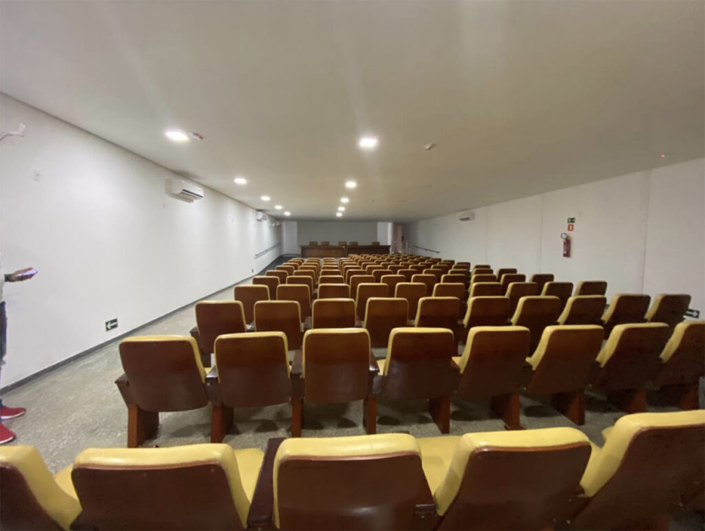 Fizemos uma reforma completa: móveis e cadeiras revitalizados, ar-condicionado, banheiros e camarins com estrutura moderna, adaptações para pessoas com deficiência e instalação de equipamentos de segurança e combate ao incêndio. Agora temos um espaço moderno, confortável, seguro e com acessibilidade para que os artistas e a comunidade possam utilizar.
